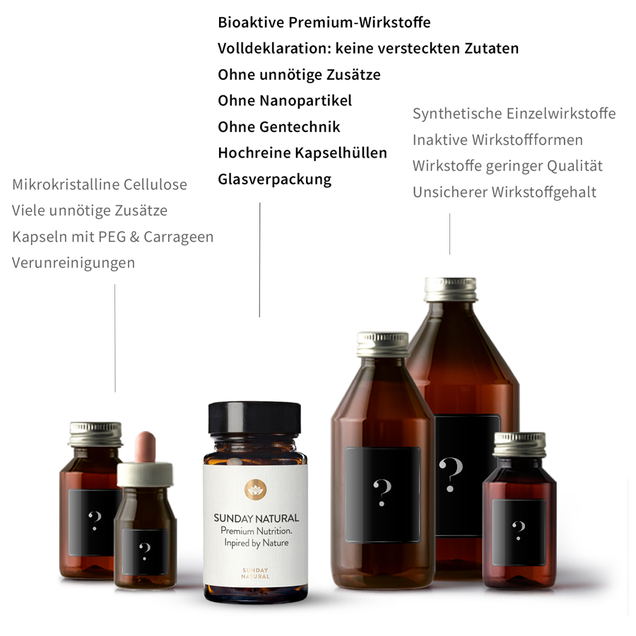 - Our commitment: complete avoidance of all unnecessary additives, technical excipients and chemical extraction agents